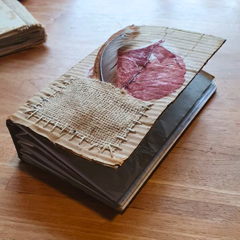 Je leert hoe je met naald, draad, karton en papier katernen vormt en deze voorziet van een kaft. De kaft geef je daarna een eigen karakter, bij voorkeur met gerecyclede of gevonden materialen. Denk aan veren, takjes of gedroogde bloemen, maar kijk ook eens wat er thuis al rondslingert. Mooi papier, een bijzonder stukje karton: het kan allemaal onderdeel worden van jouw boek. Het wordt een boekje op ongeveer A5 formaat.